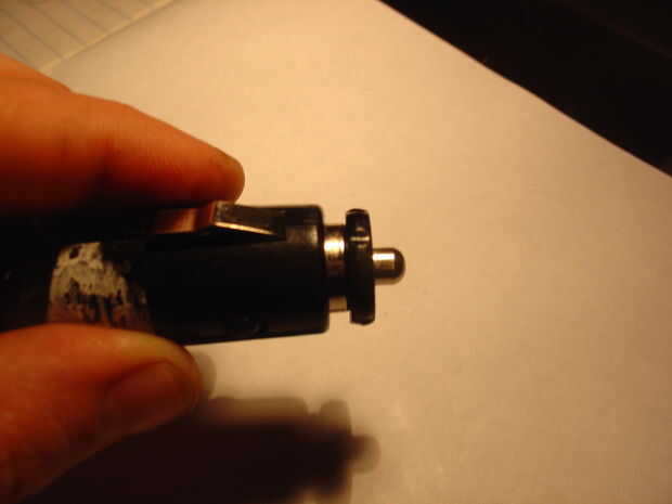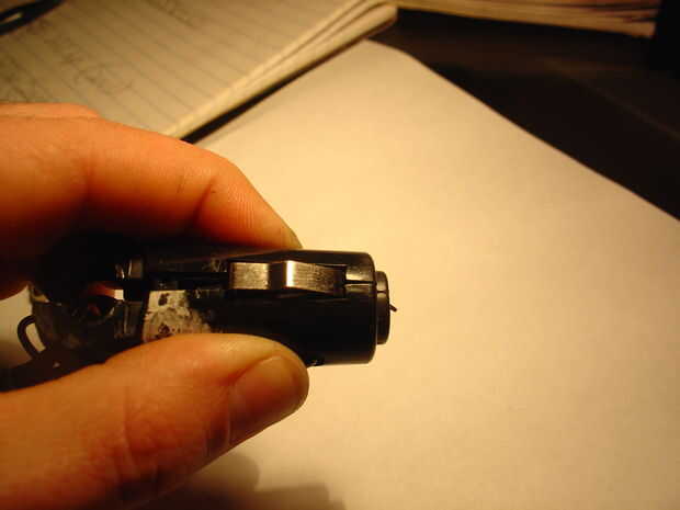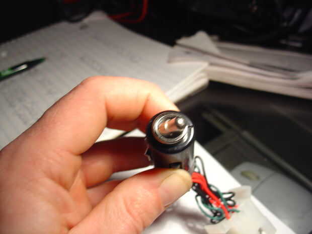 collar de plata en el borde frontal. Luego coloque la boquilla de plata en el cable rojo que soldadas a la primavera.