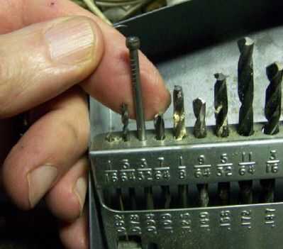 Comience seleccionando un clavo de acabado de 3 pulgadas de largo. Trate de montaje con los agujeros en un índice de taladro para encontrar un poco aproximadamente el mismo tamaño que el diámetro del clavo final.