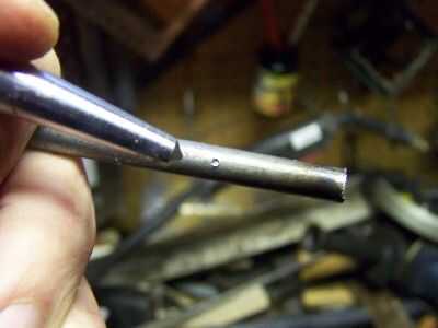 Varilla de 1/4 de pulgada de uso para la base del imán en el eje del inducido. Hacer un hoyuelo con un punzón para que la broca patine, pero agujerea un agujero donde desea. Hice el hoyuelo en lo que parecía una distancia apropiada de un extremo de la varilla de 1/4 de pulgada. Todavía no cortar la varilla.