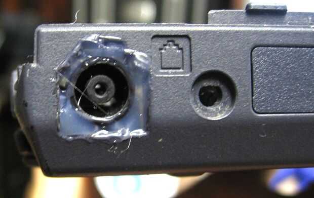 1) conector de alimentación DC se fija la placa madre no en el exoesqueleto de la computadora portátil. Por lo tanto cualquier choque al conector de alimentación está transduced directamente a la soldadura entre la toma de corriente y la tarjeta madre.