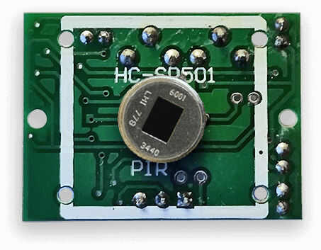 Cuadro 03 muestra la parte inferior del módulo PIR con el sensor PIR de transistor de soldado.
