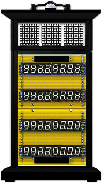 Cuadro 05 mismo Mostrar como imagen 03 pero con el contraste de densidad neutra de plexiglás pantalla cubierta fijada para bloques de madera de montaje. La pantalla ahora es fácil de leer en todos luz y el PWB y exhibición de las piezas ahora están ocultos a la vista.