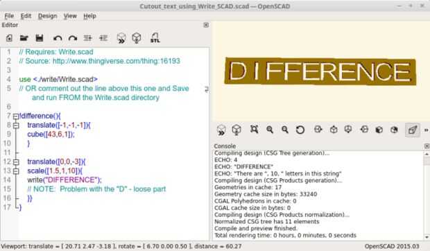 OpenSCAD (con diferencia): problema con la D - perder parte