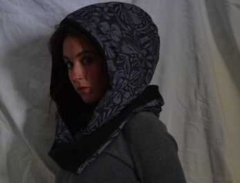 esto es una sudadera con capucha scarfed cálido y acogedor, usted puede estaban en su cabeza como una capucha o sobre su hombro. es reversible por lo que puede cambiar los colores dependiendo de cómo usted está vestido! son bonitas tanto en hombre o