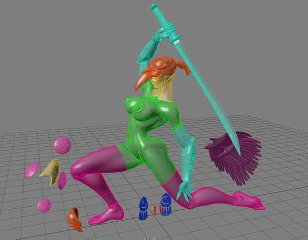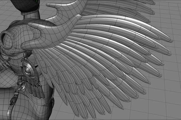 Consulte con el servicio de impresión que va a utilizar para averiguar los detalles específicos sobre cómo quieren el modelo preparado. Desde mi modelo original en una aplicación basada en spline, que definitivamente tenía que hacer la limpieza más que alguien que empieza en una aplicación basada en el polígono, pero nunca menos que usted tendrá que asegurarse de que el modelo está muy bien estructurado para evitar que él rechazó por el servicio de impresión. En general, el modelo deberá ser "estancas" y "grueso" en todas partes. Mientras que usted no tiene que hacer una malla contigua, por lo menos necesita intersección de volúmenes que están totalmente encerrados. En las áreas donde podría tener paño o superficies delgadas - como la ropa, cortinas - o en mi caso, plumas - es necesario dar las partes del modelo "espesor" por lo que realmente se pueden imprimir. También necesita asegurarse de que cualquier elemento fino satisfacer el espesor mínimo requerido por el servicio de impresión o los resultados podrían ser demasiado frágiles para ser práctico. También tenga en cuenta que muchos servicios cobran por el volumen de material utilizado en el proceso de impresión - por lo que tomarse el tiempo para hacer su modelo una cáscara hueco con un espesor en lugar de una sola pieza gruesa puede ahorrar los costes de impresión - pero otra vez - consulte con su servicio de impresión para saber cuánto cobran y cómo optimizar el modelo.