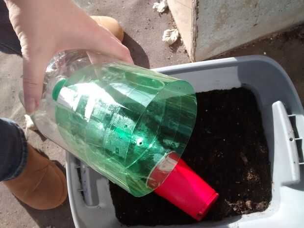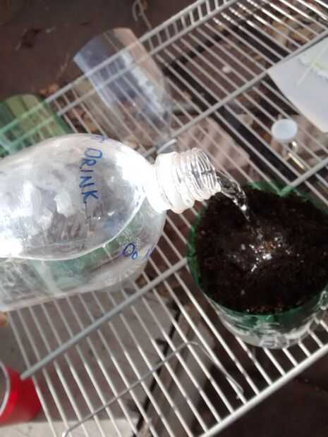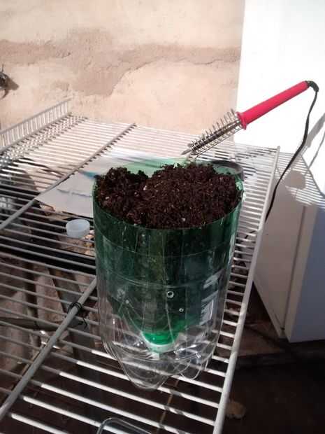 Llene su nifty nueva cosita con suciedad. No empaquete con hacia abajo. Vierta el agua sobre toda la suciedad, este nivel hacia fuera y comprimirlo. Vierta en el agua, moviendo la fuente de agua para que la suciedad se haya empapado, hasta que la suciedad está mojada a través y la parte inferior de la mitad de la olla está llena para el orificio de entrada de agua. Hacerlo fuera o en el fregadero como usted conseguirá probablemente desbordamiento.