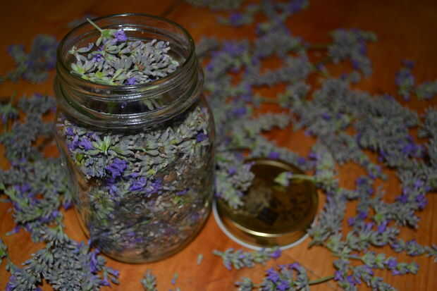 este aceite de lavanda huele a granUsted puede utilizar esto en jabones y velasPaso 1: materiales LavandaAceite vegetalTarro deEnvoltura de plásticoServilletaBanda de gomaPaso 2: Secado de la lavanda Tira hacia abajo de la lavanda con los dedosColoca