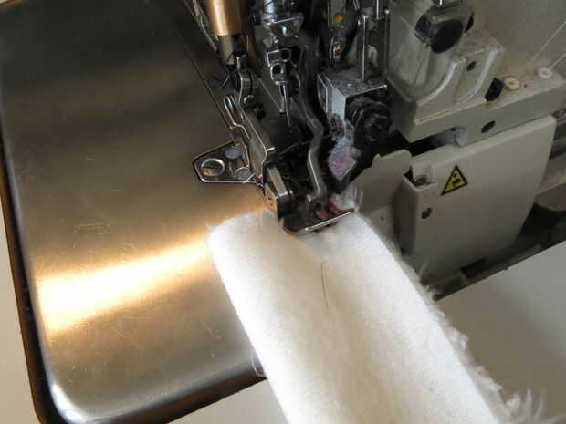 Una vez que esté correcto salir con el elástico en el interior, coser los extremos del tubo cerrado con un poco de elástico que se pega hacia fuera. Coser ambos extremos como este, por lo que el elástico se captura dentro del tubo en ambos extremos.
