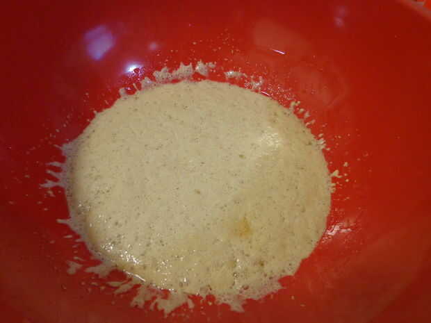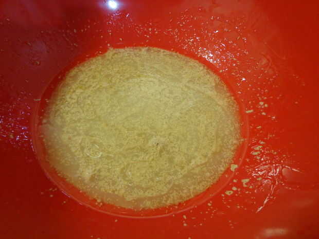 Lo primero que vas a hacer es mezclar la levadura, agua, aceite y azúcar.
