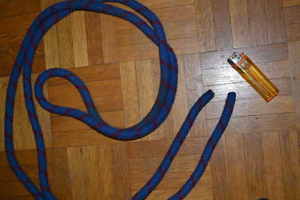 corte la cuerda de 2 metros y medio (o tanto como usted lo quiere mucho)
