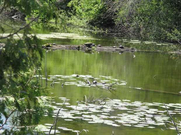 Esta foto tomada el 29/05/2008 en 11:33 ubicación monte bosque Ontario Canadá 1 Km est. de Sligo Rd est. en Southgate 4 Rd. En él puede identificar claramente 1 tortuga de ajuste y un número de tortugas pintadas del este. Las estadísticas de lado no registradas y sin muestras de tejido