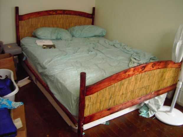 Además, las porciones de bambú de los rieles laterales de la cama se inclinó hacia fuera un poco demasiado (> 3/4") en dos puntos a lo largo del riel. Esto es debido en gran parte a la forma en que se almacenan en los meses previos al proyecto (leer tan mal). Había sido almacenada allí dentro, o si tiempo había permitido la posibilidad de enderezar, por vapor de otros medios, esto podría han sido contrarrestado.