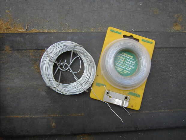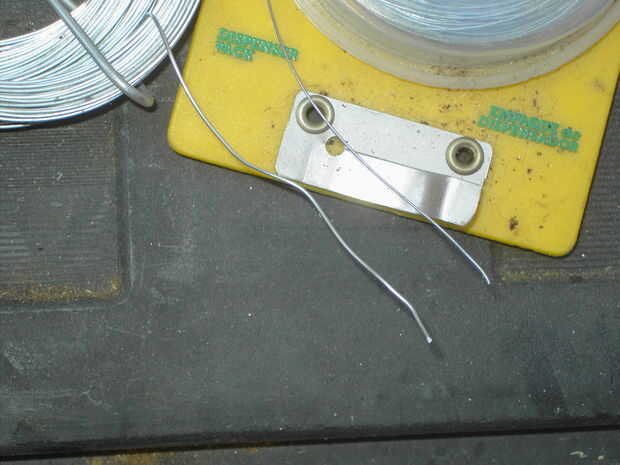 Después de terminar todos los hoyos y quitar las rebabas del interior de la "L", corte suficiente alambre (calibre 24 o menos) para que tenga dos piezas para cada juego de orificios de 10" de largo.
