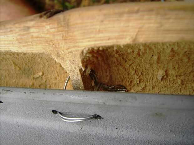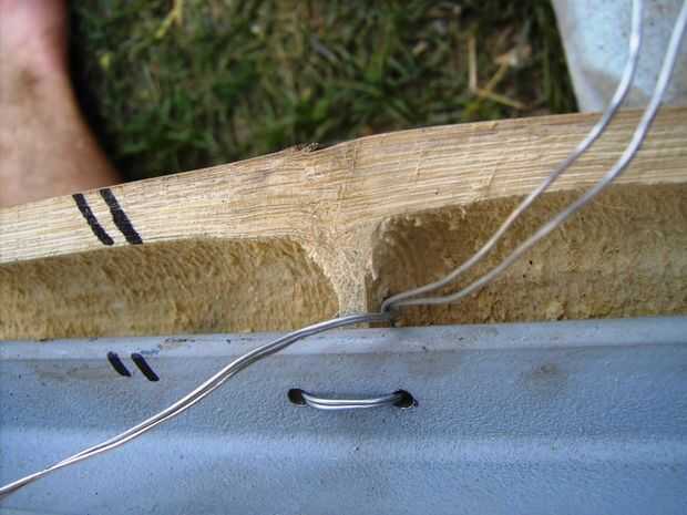 Abajo se encuentra una sección de acabado. El alambre trenzado entre sí, corte y empujó por debajo del borde del acero hacia abajo. Habrá que algunos holgura y apretar se encajarán a presión el alambre, pero medio es bastante fácil llegar. Cuando haya terminado, el bambú debe flex solo un poco (