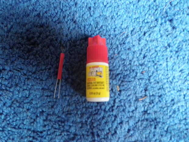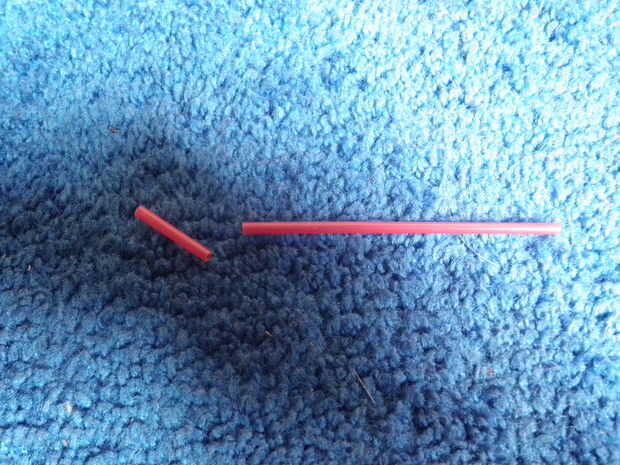 Primero cortar cerca de ¾ pulgada de que el café mezclando paja y super pegué dentro de la boquilla de la parte inferior del cohete. No obtener una gran cantidad de pegamento en el motor; mantenerlo en la paja y la boquilla.