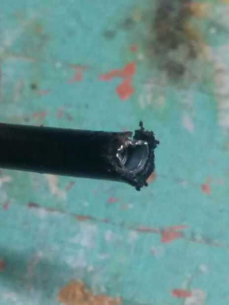 Esto es cuando corte la cubierta del cable a su tamaño con la motosierra.