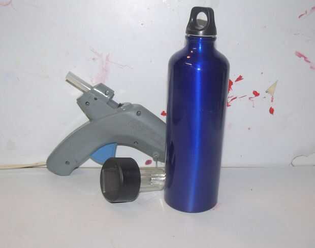 Llené el depósito hasta la mitad con juego de arena, usted podría utilizar mármoles, rocas u otra cosa para darle algo de peso, entonces agarré mi pistola de pegamento fiel