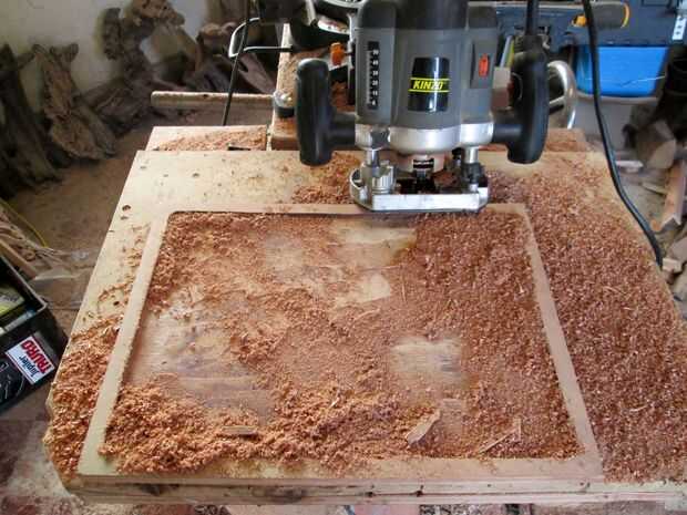 Corte un pedazo de madera contrachapada y averiguar cómo solucionar el cuadro.
