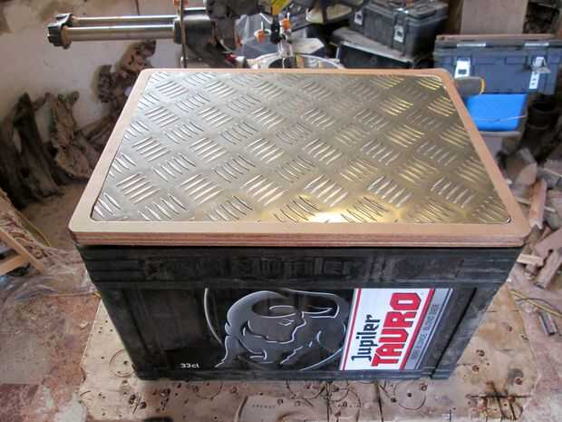 Pegue el aluminio en la parte superior de la tapa - o hagan como yo: utilizar el router para hundirlo en la cubierta.