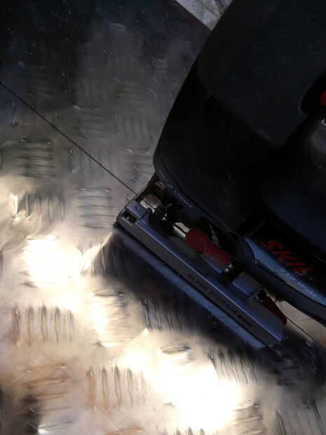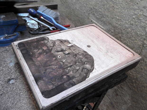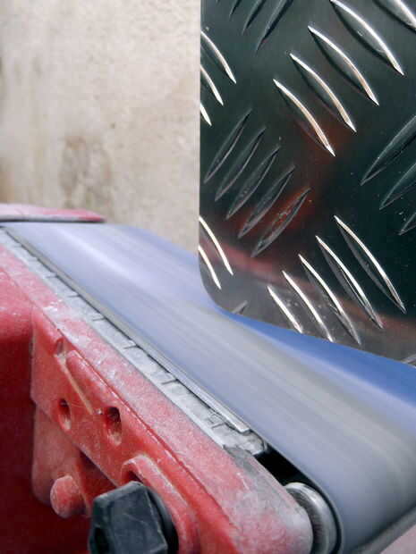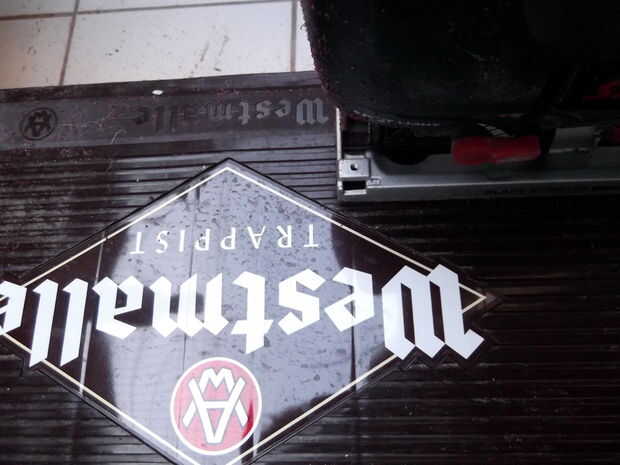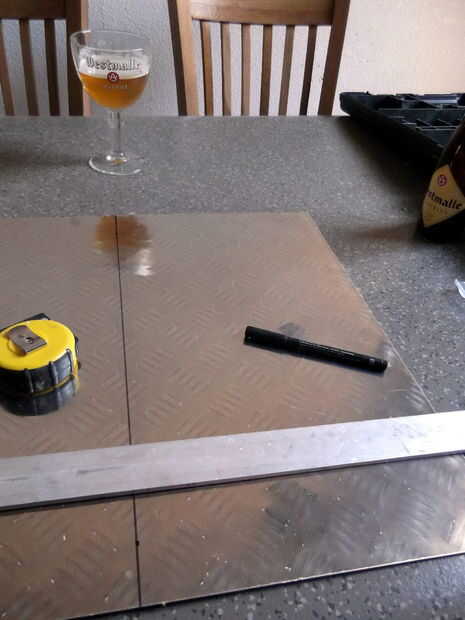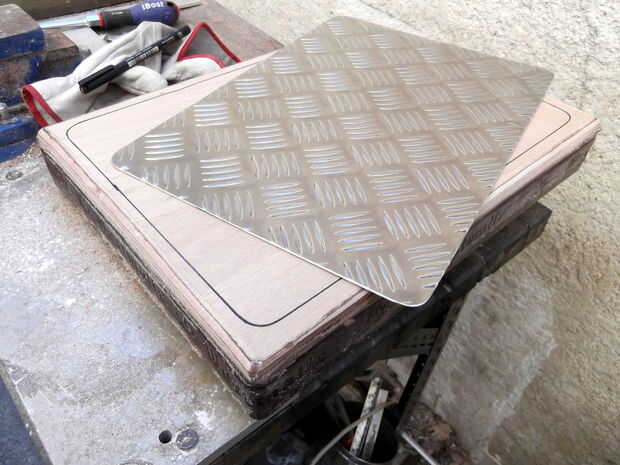 Corte algunos hoja de aluminio para la cubierta con una sierra de calar. Utilice esta hoja como modelo para la zona de le va arrancar. Utilice a un extractor para suavizar los bordes y a arrancar algo de madera de la parte superior. Pintar los bordes y pegar la hoja en la cubierta.