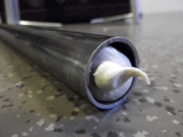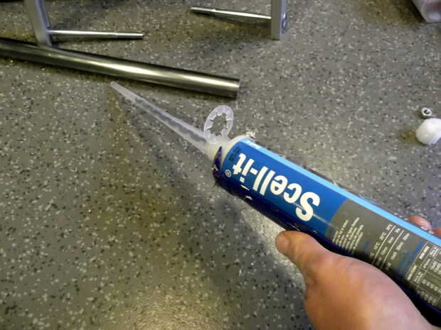 No quería pasar mucho tiempo, así que llena el tubo de acero de anclaje químico y poner las dos piezas preparadas en su lugar.
