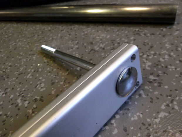 Perfore agujeros en los lados de la manija y utilice un martillo para romper el extremo cuarteado de los pernos en el aluminio.