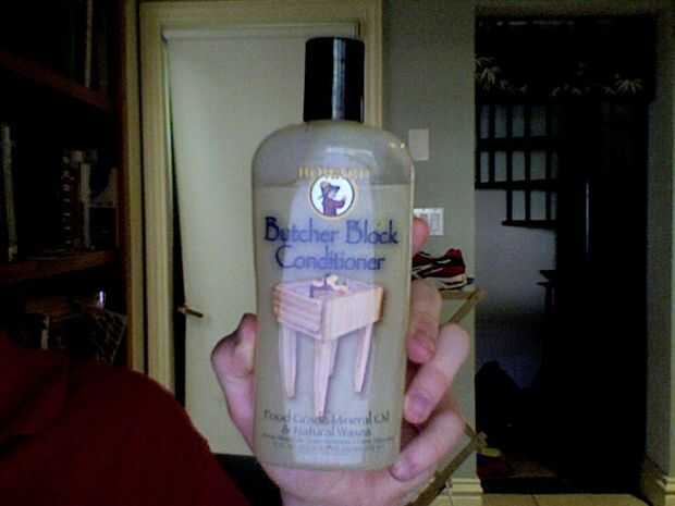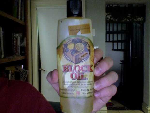 Primero, vea si usted puede calentar la botella de cosas, así penetrará más profundamente en la madera. Generalmente solo lo dejo en sol. Yo uso aceite de acondicionador o bloque de bloque carnicero. Son principalmente aceite mineral y cera. Poner en una buena cantidad y girar el torno en su velocidad más baja. Utilice un paño limpio para trabajar el acabado en la madera y pulir hasta un brillo agradable. Simple y fácil.