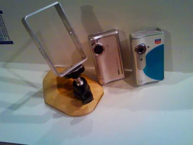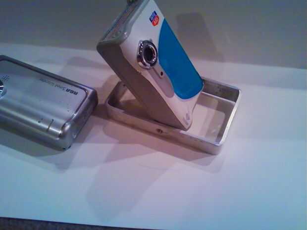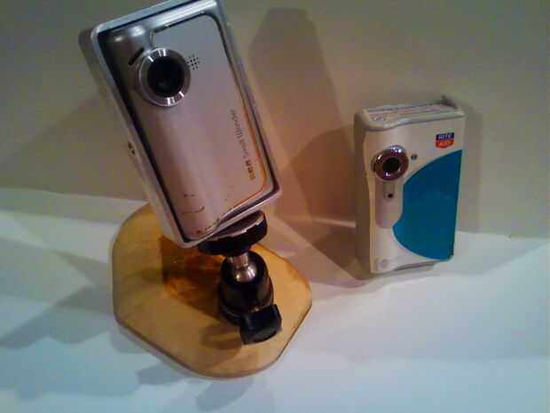 La RCA "Little Wonder" y Rite Aid un momento las cámaras de vídeo de uso cada uno en un bolsillo, pero tampoco tiene una trípode. Por lo tanto, estas existencias de aluminio en el vicio con un martillo, entonces perforado y golpeado ligeramente un agujero de 1/4-20 en cada lado para dar cabida a un tornillo de trípode estándar.