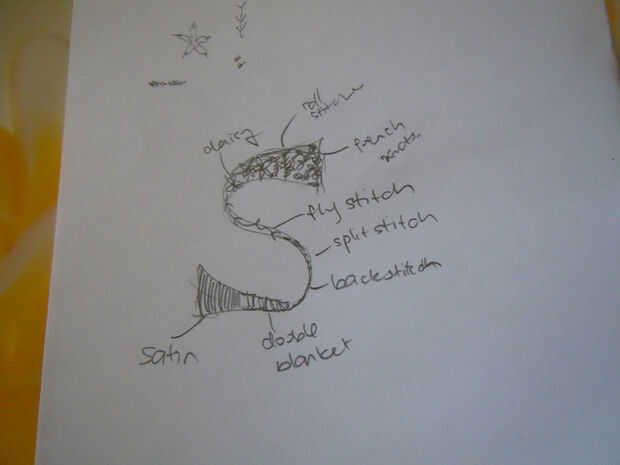 Empecé por dibujar mi carta y qué tipo de costura que quería hacer. Luego era cuestión de traducir en bordado!