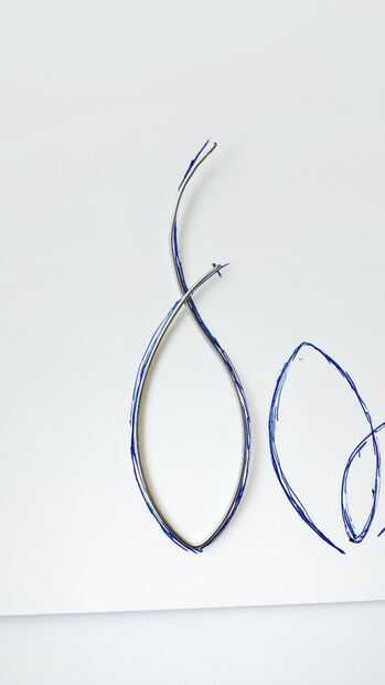 Dibujar cualquier diseño que elegiste en un papel para actuar como una guía. Luego uso una simple curva el alambre para que coincida con esas directrices.