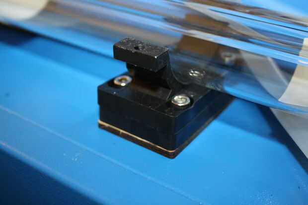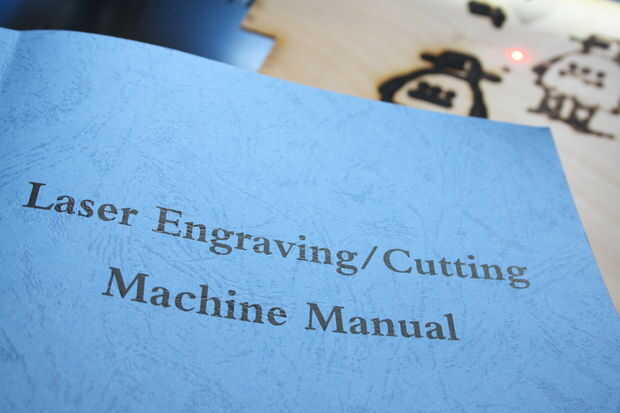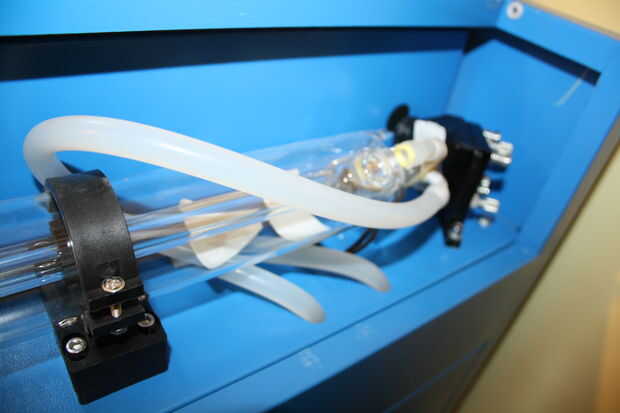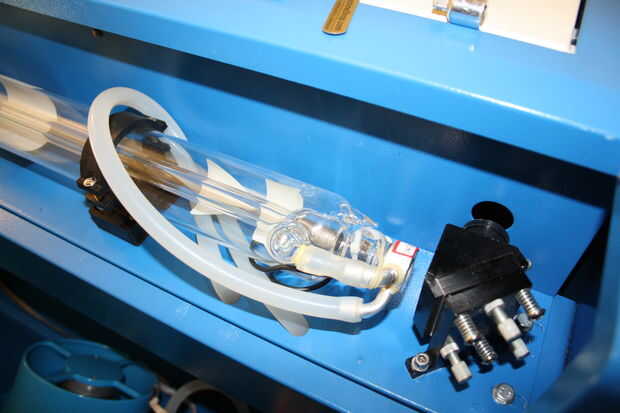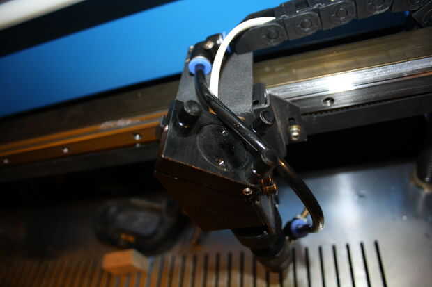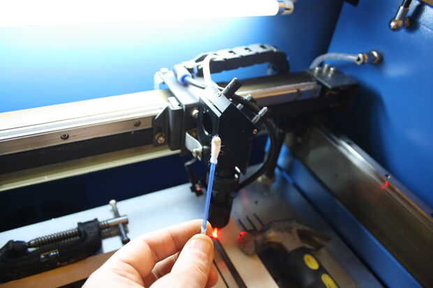 El cortador del Laser utiliza una serie de tres espejos y una lente. El rayo láser debe estar alineada en el centro de cada espejo y en el centro de la lente. Si la alineación está fuera puede llevar a algunos efectos raros, como dos rayos láser por ejemplo. Este efecto se demuestra en una de las fotos.