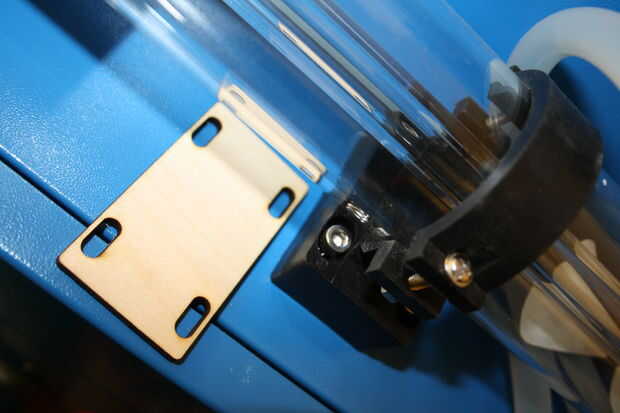 El tubo del laser se basa en varias placas de 8mm. Para bajar el tubo requiere de 5mm tendrá que sustituir a uno de los lugares con una alternativa de 3mm. Por suerte tengo unas hojas de madera contrachapada de 3mm.