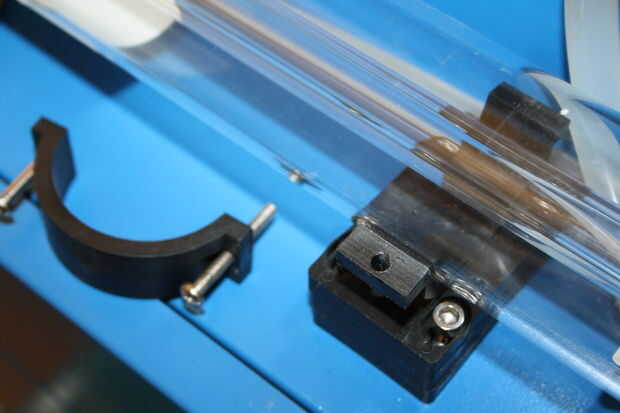 Para ajustar el láser de tubo en horizontal (izquierda y derecha) remite bastante recta, afloje los pernos y lado el tubo del laser hasta su centro, pero para mover el tubo en el plano vertical (arriba y abajo) es mucho más complicado.