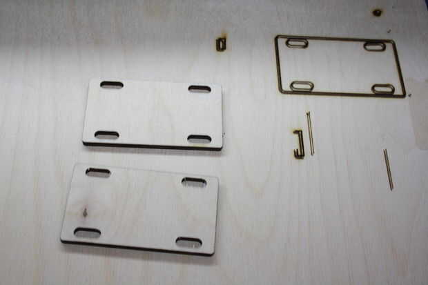 Paso 4 | Corte dos placas, una para cada punto de montaje. Tuve que hacer algunos ajustes menores para encajaran las placas. El archivo ha sido ajustado para usted.