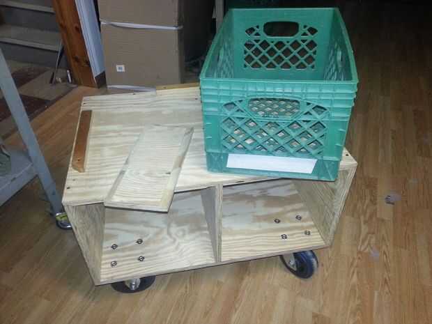 Este fondo realizará 2 cajas de leche larga y era tamaño en consecuencia. Sus nuevas ruedas serán las mejores ruedas indianas que vende puerto de carga. He comprado planchas de madera agradable de 3/4 de pulgada y habían cortarlo en la tienda (gratis). Había comprado un router el año pasado en mi vida corta luthier vivida, y era el momento de usarlo una segunda vez. Los bordes y apoyo medio fueron encaminadas hacia fuera. Todo esto fue pegado y atornillado. Incluí mi probeta de referencia. Para colocar las ruedas usé tuercas t, para que nada era pegarse en el camino de las cajas de leche. Superestructura clavado en algunas placas para mantener el artesano centrado, unido por la gravedad. Esta cosa es fornida, tuve en él a dar un paseo.