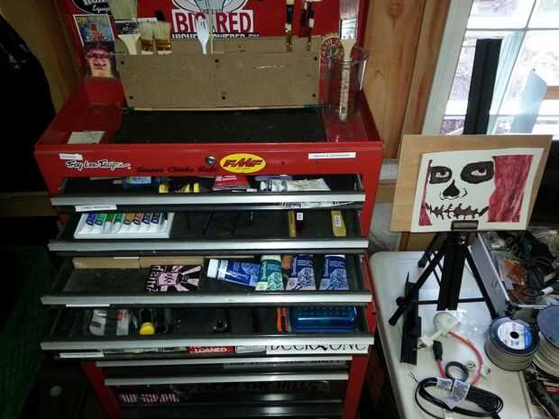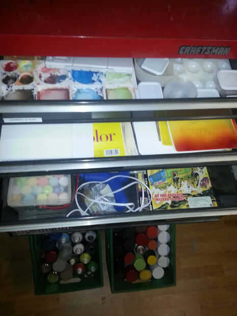 Todos ellos apilados hacia arriba y, wow, consiguió más de lo que esperaba. ha cargado los cajones para arriba y se siente bueno tener todo en un solo lugar y móvil. Por lo tanto, tomé una trampa de desorden y hecho... Bueno, va a ser una trampa de confusión para la pintura, ahora, jaja :D Puede, por supuesto, cosas cualquier cosa que quieras en esa vieja caja de herramientas sentado allí, de Pokemon a una estantería de la tienda para todos los manuales para todo, o construir un PC de repuesto en él y tiene melodías y manuales en línea.