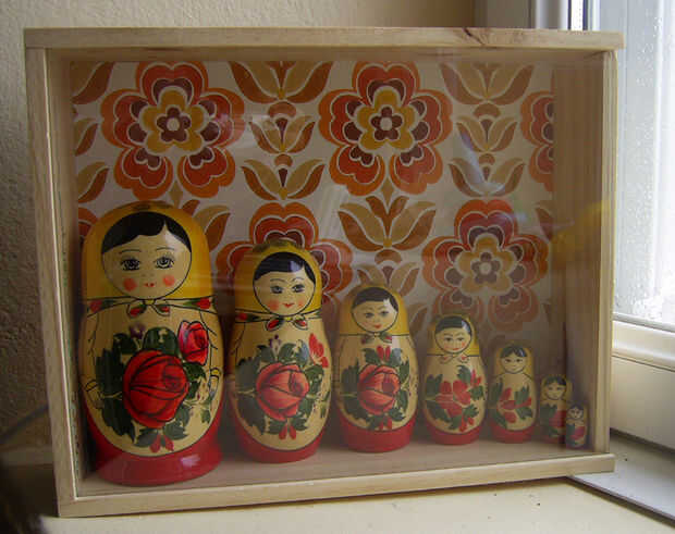 Yo tenía este conjunto de Matriochkas clásico en un estante, uno más grande está agrietada en el lado derecho.