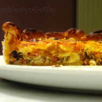 5. por último, cubrir con el queso rallado, todo uniformemente repartidas en la parte superior. Esta será la 4ta capa. Coloque en el horno caliente y hornear durante 30 minutos. Los últimos 8 minutos, apagar el horno inferior a 175° C. Retire del horno y tu casa olerá increíble! Espere unos momentos y tomar cuidadosamente la Quiche de la lata con ayuda de espátulas en un gran plato equipado grande. Retire con cuidado el exceso de papel en los lados y parte inferior. Cortar en cuñas grandes y servir con esa ensalada y aderezo. Para hacer el aderezo, tomar un tazón más pequeño y agregue todos los ingredientes para la salsa. Había sazonado con 5 muecas de pimienta negra y 5 sonrisas de Sal rosada. Batir con un batidor pequeño y sabor. Yum! Disfrutar de mis dulces! XXX también puede encontrar esta sabrosa receta aquí en mi blog: http://sophiesfoodiefiles.wordpress.com/2015/11/17/pumpkin-smokedbacon-quiche/