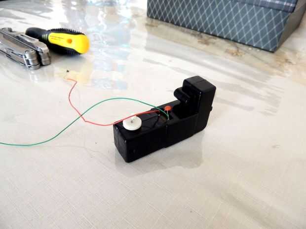 - 1 caja de cambios de dos ejes de una baterías operado juguete: una caja de cambios es una pequeña caja (la mayoría de las veces es de color negro) donde se puede encontrar un motor eléctrico. Dentro de la caja de cambios se encuentra un mecanismo de engranajes, transmisión de movimiento en diferentes ejes. Si encuentra un juguete eléctrico con varios movimientos (como una ametralladora mueve el barril y girar el clip de munición, o un coche que se mueve por el suelo y abren y cierran una puerta en la parte superior), entonces probablemente usted encontrará una buena caja de cambios de dos ejes. Para obtener más información, Ud. puede chequear este instructable.