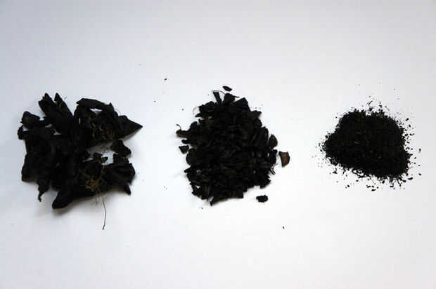 Después de secar las cáscaras se pueden desmenuzarles fácilmente. En la última foto ver tres pasos de desmenuzarse. El segundo paso es lo suficientemente bueno para obtener un color marrón!