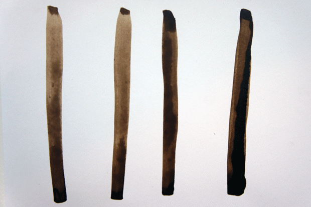 Ya hervir el agua con los pedazos de la cáscara verde, el más oscuro el color obtiene. Haga clic en la última foto para ver cuánto hervido para obtener el color específico. Si desea teñir una pieza textil, puede hervirla junto con el agua y piezas de cáscara verde.