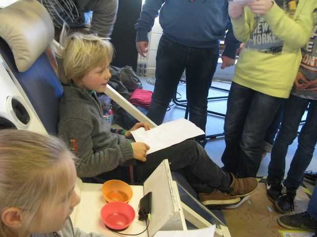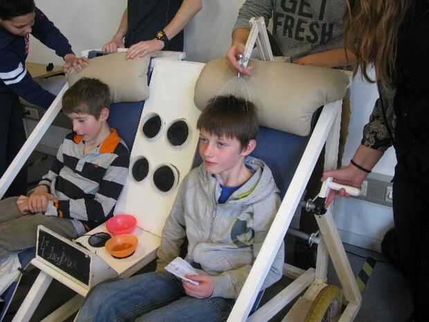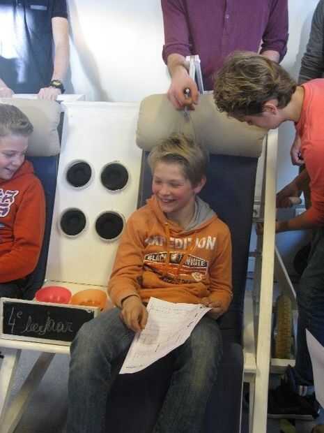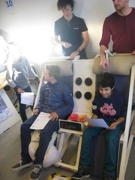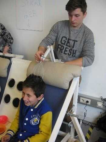 -El eje principal es atado con una rueda trasera. Por lo tanto se masajear la espalda del niño que está sentado en el asiento cuando el asiento es empujado. Las piezas de masaje superior serán operadas manualmente por otro niño. Esto tendrá que activar una palanca para girar las piezas de masaje.