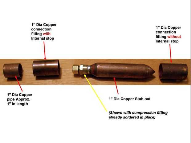 (1) 1" diámetro tubo de cobre conector con parada interna (una parada de funcionamiento interno es una formación en el punto medio de la conexión que impide que un tubo de ser insertado más de mitad de camino en el accesorio)