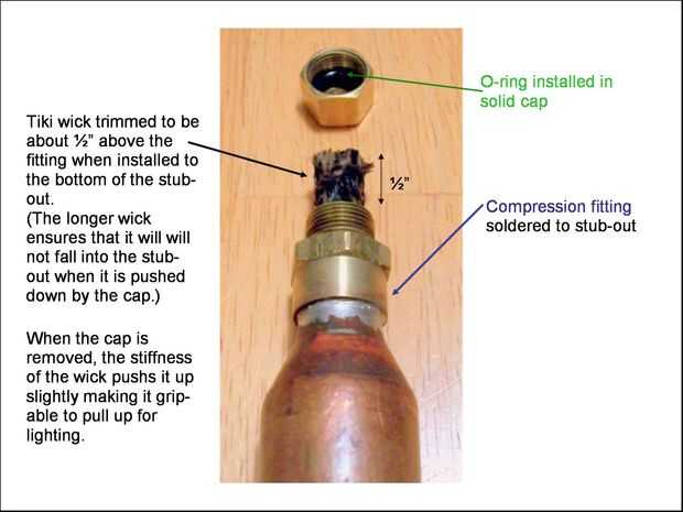 4. recortar la mecha para ser aproximadamente 1/2" por encima de la Guarnición de la compresión.