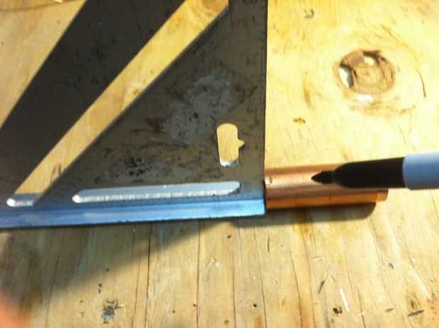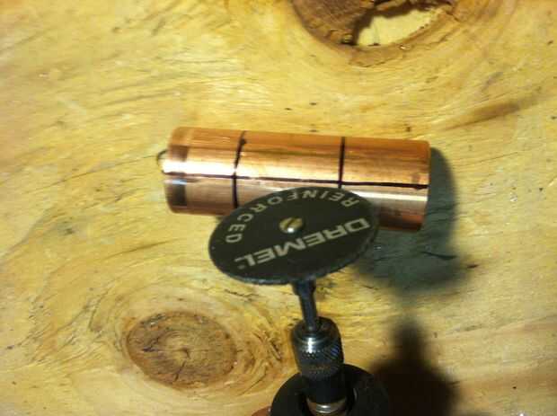 Cortar 4 ranura de 1 "x 1/8" con una dremel. Cuidado con el cobre se pondrá muy caliente muy rápido. Utilizar una abrazadera o tornillo para mantenerla segura.