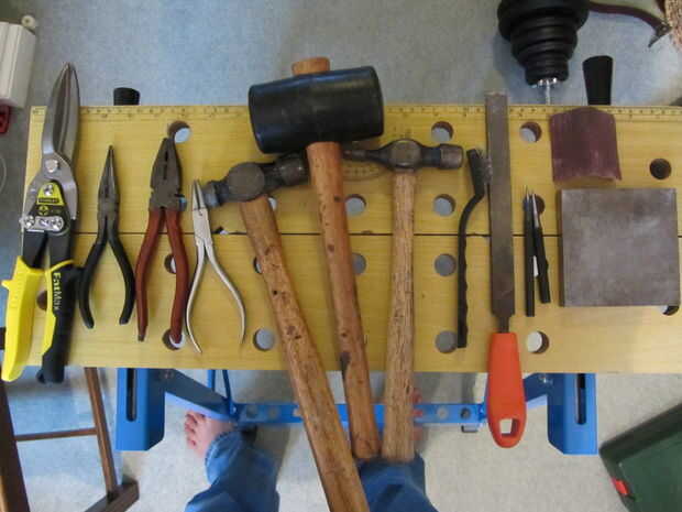 Alicates (punta delgada, bloqueo, redondeado) - para manipular el metal. Me atrevería a decir que tener por lo menos ahí de alicates de punta delgada y usted puede administrar con sólo ellos.