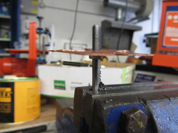 Para acabar, pase la segunda tuerca hexagonal en la parte superior y apriete hacia abajo para que los pétalos comienzan a hebilla ligeramente y la tuerca está muy apretada. No apriete demasiado, ya que podría dañar el cobre. Asegúrese de mantener todos los pétalos en sus correctos alineamientos-después el siguiente paso, no se puede cambiar donde están.