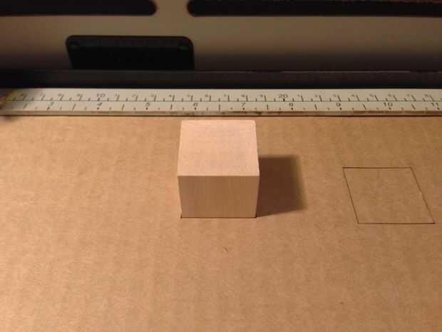 Una vez que se ha quitado la Plaza puede insertar su cubo de madera en la plantilla. Que tenga que jugar con la escala de su plaza para caber perfectamente sus particular cubos de madera. Desea que el cubo se deslice sin esfuerzo a la plantilla, pero para tener la habitación más pequeña posible que agitan alrededor. Asegúrese de que prueba múltiples orientaciones del cubo para asegurarse de que todas encajan.