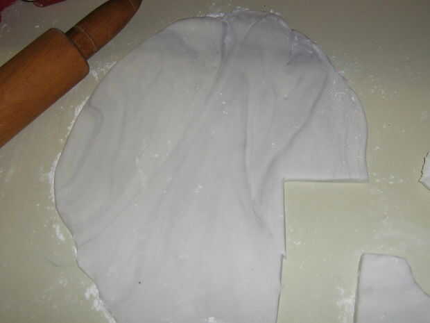 Rodillo hacia fuera. Quieres más gruesa que el fondant de base, pero no demasiado espesa.