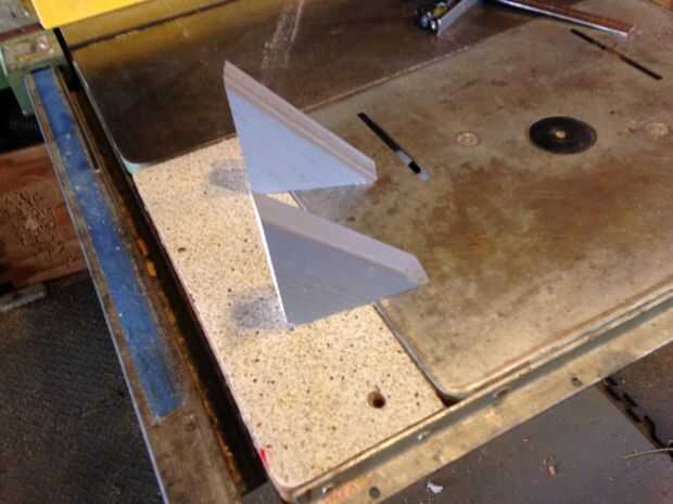 El pendiente de viaje en la base no se hace con un ajuste de 10 grados en la Sierra de mesa funcionando el contrachapado cuadrados ~ 30" la pieza a través de vertical.